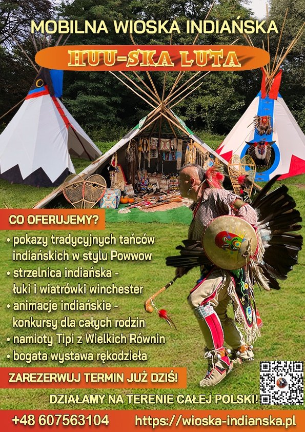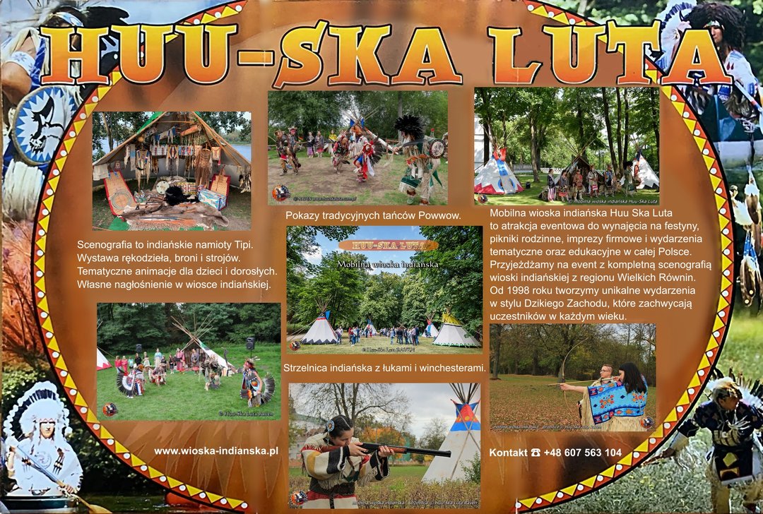 Mobilna wioska indiańska Huu-Ska Luta z Torunia to artystyczno-edukacyjna atrakcja eventowa realizowana nieprzerwanie od 1998 roku na terenie całej Polski. Zespół obsługuje imprezy firmowe, festyny, pikniki rodzinne oraz wydarzenia plenerowe, oferując autentyczne spotkanie z kulturą rdzennych mieszkańców Ameryki Północnej. W ramach oferty prezentowane są pokazy tańców indiańskich Powwow na scenie lub w scenografii wioski indiańskiej z namiotami tipi, animacje tematyczne dla dzieci i dorosłych, warsztaty rękodzieła, wystawy replik oraz bezpieczna strzelnica indiańska. Program dostosowywany jest do wieku uczestników i charakteru wydarzenia. Oferta kierowana jest również do szkół, przedszkoli, bibliotek, muzeów i domów kultury.